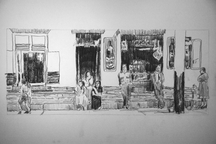 For this project, I have broken with conventional animation and explored new directions, similar to those featured in the work of South AfricanartistWilliam Kentridge. Like Kentridge, I use the same surface for each animation. So rather than a series of drawings to illustrate one of the Griffintown buildings in the film, I simply shot the illustration at many stages in its creation. Rather than using charcoal on paper like Kentridge, however, I have used water-based graphite and colour pencils on Mylar (a material once used by architects) as my primary medium, adding water to bring the drawings to life.